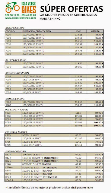 Nuevos precios en cubiertas para moto de la marca Shinko