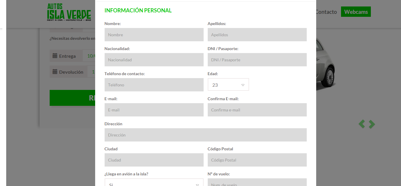 If you want to know the prices of car rental, go to the top and click on the tab cars, the same goes for bikes and motorcycles.